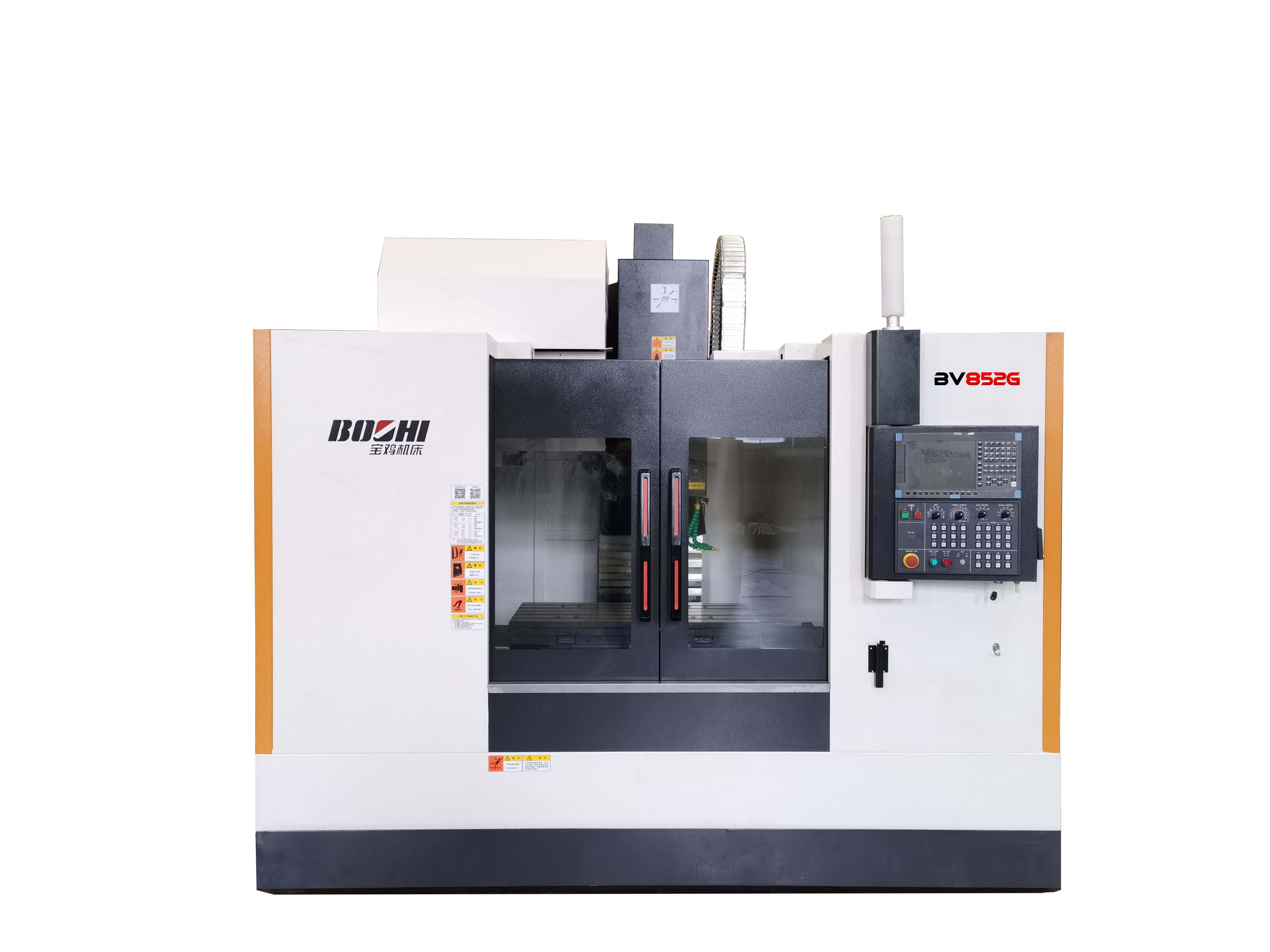 BV852G高精度立式加工中心,采用西門子840D數控系統,三軸大跨距滾柱線軌,圓盤刀庫,15000r/min高速智能電主軸,全閉環控制;整機搭配有智能熱誤差補償功能,可自動補償因工作溫度引起的機床精度變化,具有高速、高精特點,定位精度可達0.002,重復定位精度0.0015,適用于新能源汽車、5G產業等行業高精度零件的高速高精加工。