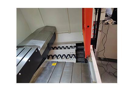 8)  在床身兩側(cè)內(nèi)嵌螺旋排屑槽,標(biāo)配鏈板式排屑器,采用前排屑結(jié)構(gòu),合理有效利用機(jī)床空間,操作方便。