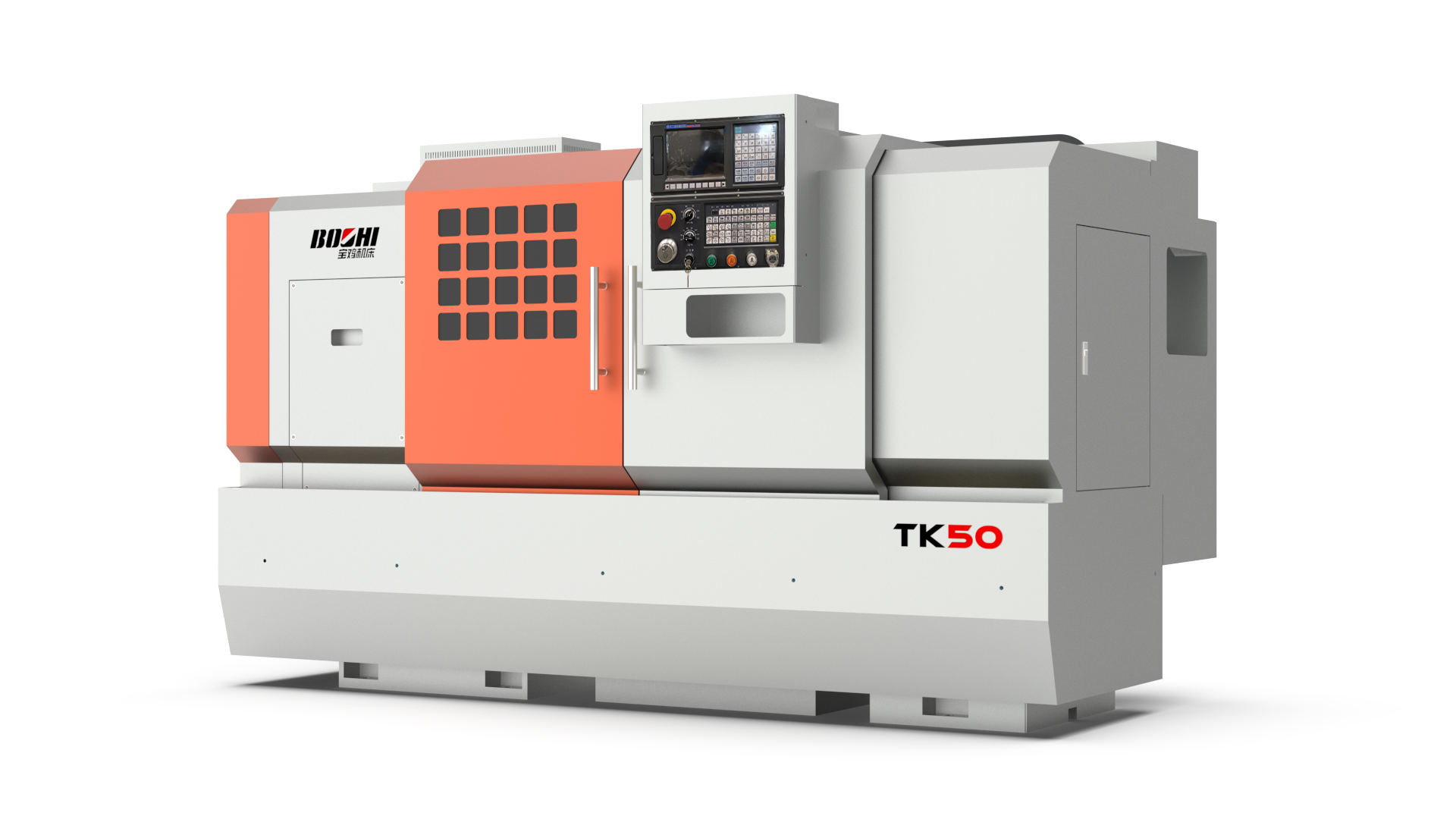 TK50 is an easily-operated CNC lathe and driven by a main servo motor. This machine features an independent spindle structure and outputs infinite variable speed. Controlled by GSK control the lathe has two controllable axes. It can perform OD and ID turning, taper and arc turning, facing, metric and inch threading automatically. Suitable for chuck work and shaft work of multi-specification medium/small batches, especially those complicated and high accuracy workpieces.